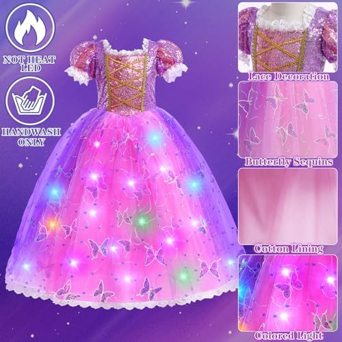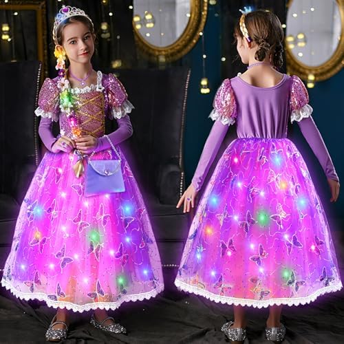 Rapunzel dress toddler will help girls catch the attention and make every important moment unforgettable. Show their elegant and confident as a real princess on any occasion! This is not only a light up princess dress, but also a precious childhood memory. Put on our princess dress and start a marvelous fairy tale journey!
