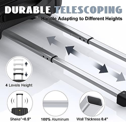 ADAPTABLE & SECURE: The telescoping handle adjusts effortlessly to different heights. Crafted from sturdy 100% aluminum alloy, it guarantees stability. TSA approved carry on luggage offers airport ease and financial security.
