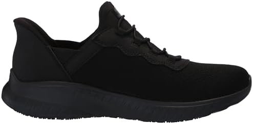 Experience slip-resistant safety with slip-on convenience wearing Skechers Hands Free Slip-ins for Work. This slip-on work style features a knit mesh and synthetic upper with a unique Skechers Slip-ins molded heel panel, an exclusive Heel Pillow, a slip-resistant outsole, plus a Skechers Air-Cooled Memory Foam cushioned comfort insole.